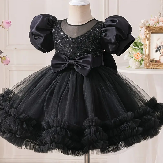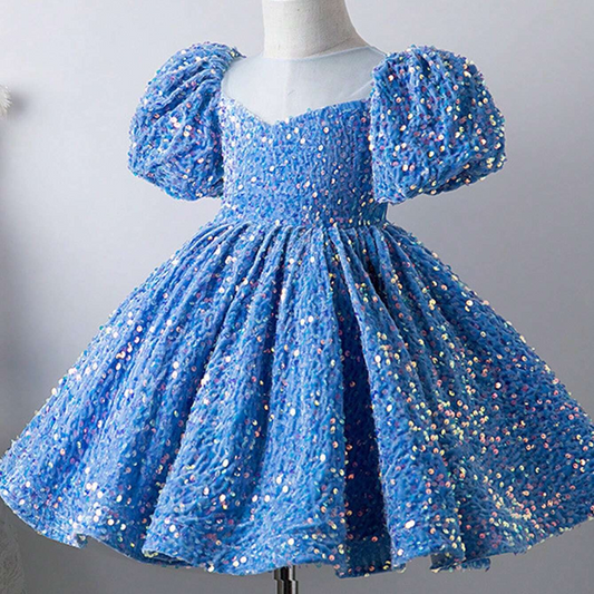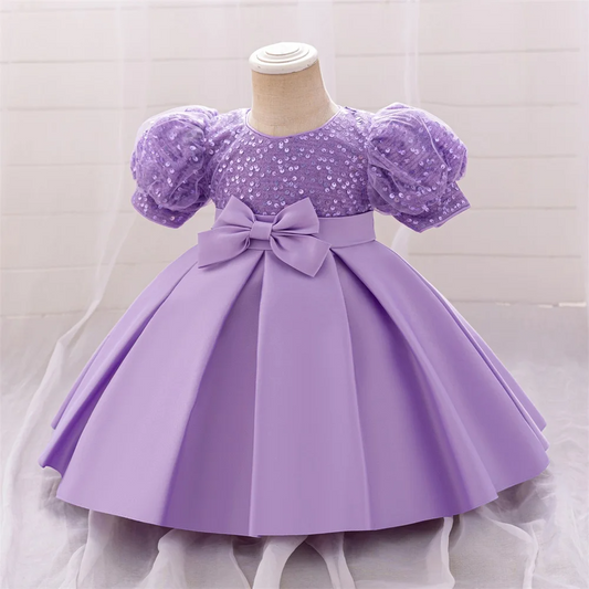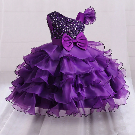 Baby Purple Multi Layered One Shoulder Sequin Frock