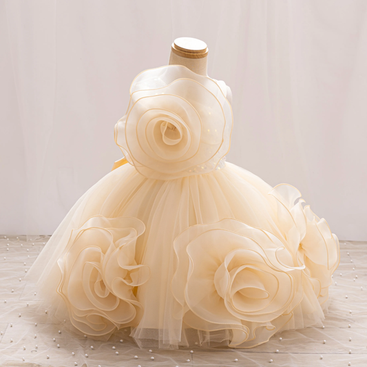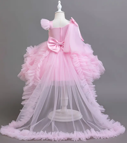 Baby Pink Off-Shoulder Multi Layered Princess Tail Frock