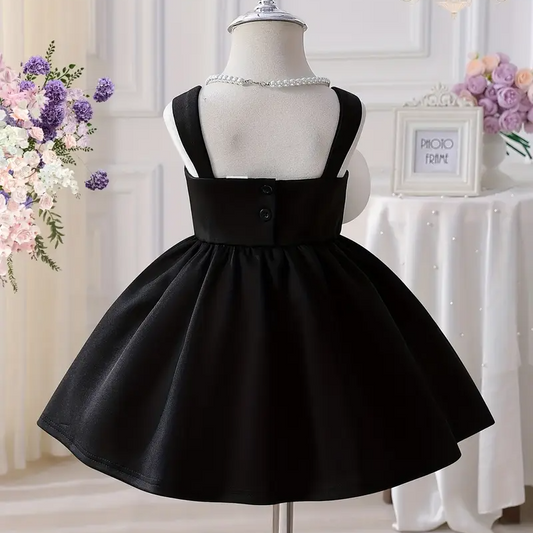Baby Black & Red Polka Dot Puff Sleeves Frock