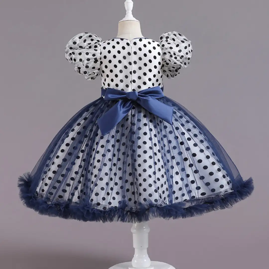 Baby Black & Blue Polka Dot Puff Sleeves Frock