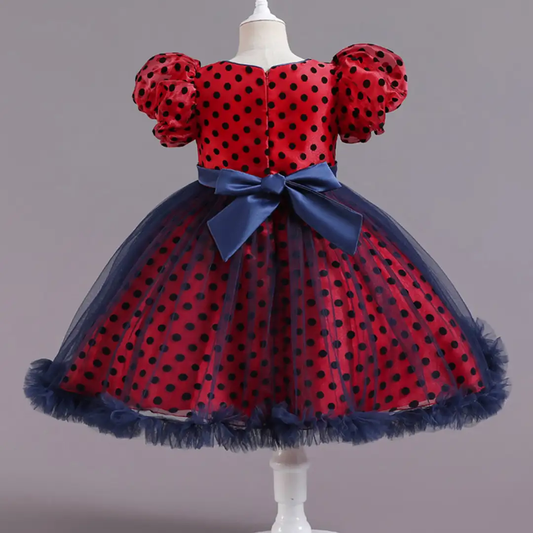 • Baby Black & Red Polka Dot Puff Sleeves Frock