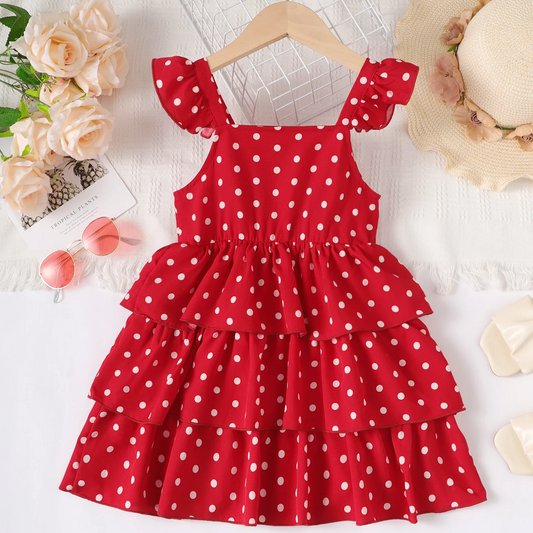 Baby Red Multi Layered Shoulders Bow Pearls Frock