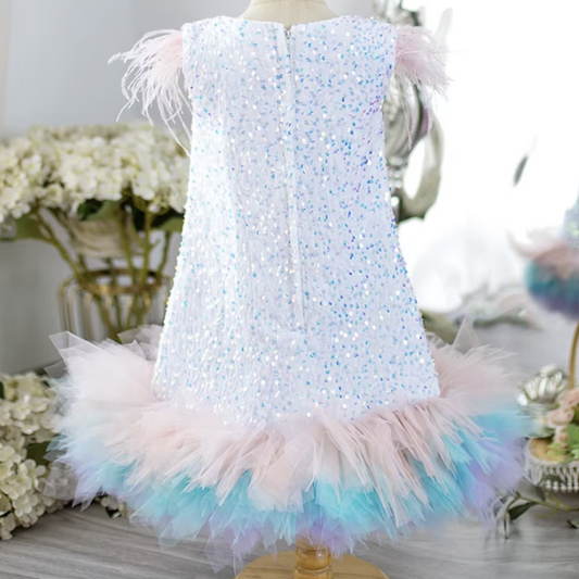 Baby Sky Blue Multi Layered Silver Sequin Strap Frock