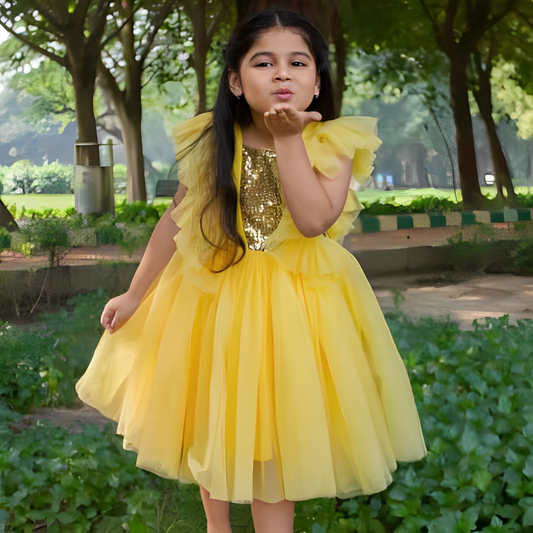 Baby Yellow Beautiful Multi Layered Princess Frock