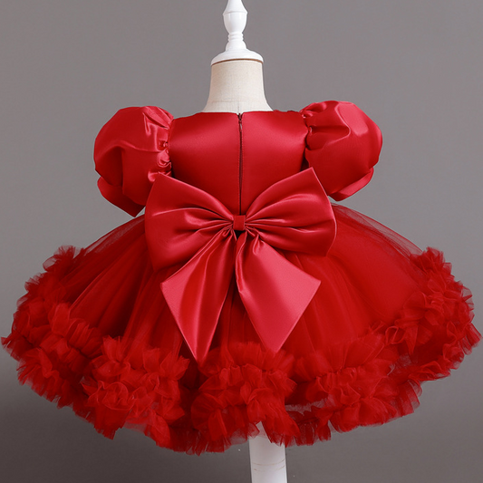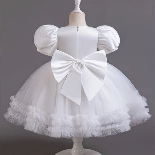 Baby Brown Net Silver Sequin Bow Frock With Hairband