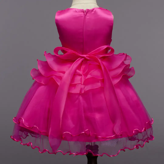Baby Flamingo Print Mesh Splicing Long Sleeve Frock