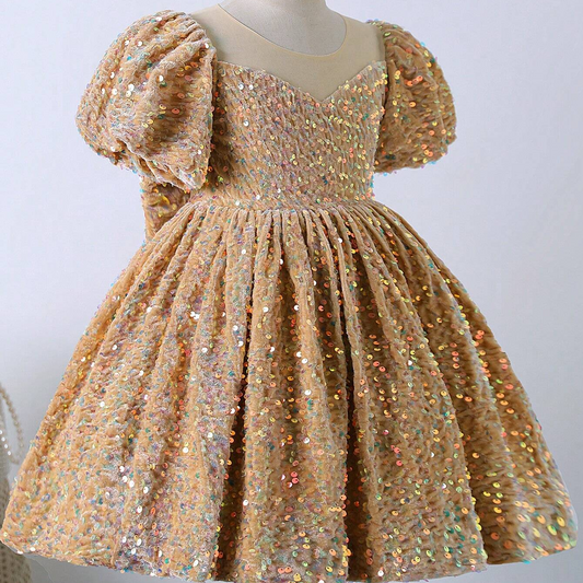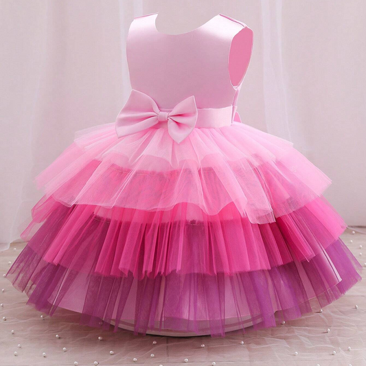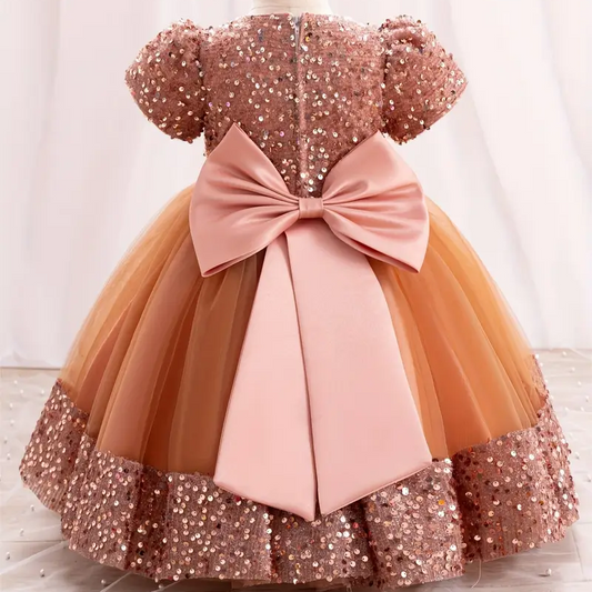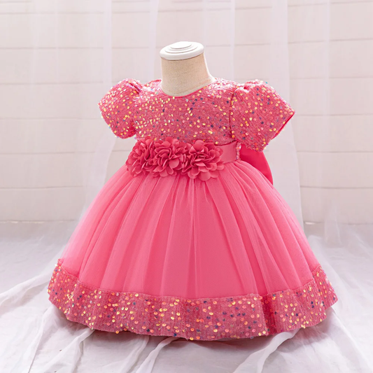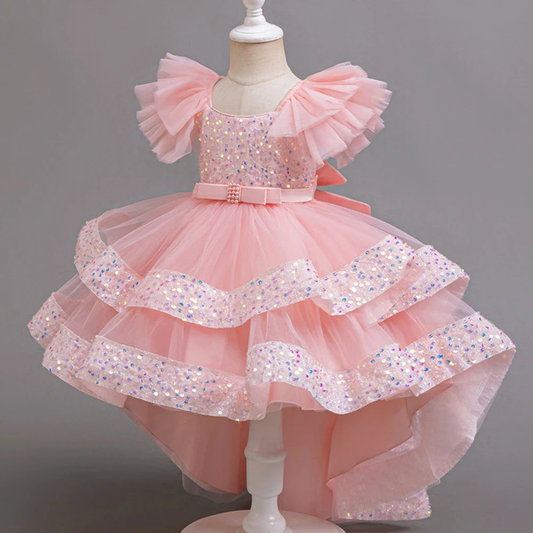 Baby Pink Sequin Multi Layered Princess Tail Frock