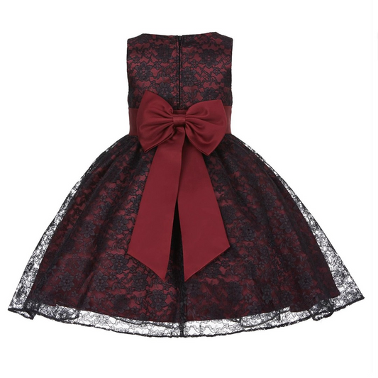 Baby Red Net Silver Sequin Bow Frock With Hairband