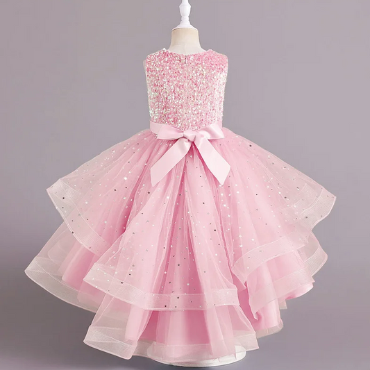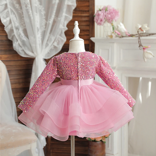 Baby Pink Sequin Long Sleeves Luxurious Frock