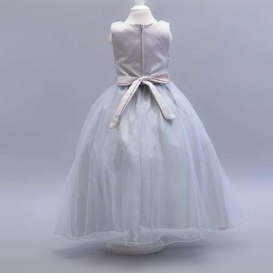 Baby Sky Blue Sequin Multi Layered Side Flower Maxi