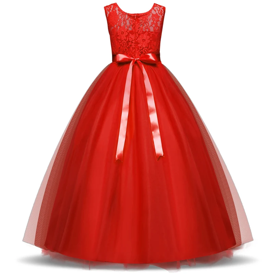 Baby Red Sequin Multi Layered Side Flower Maxi