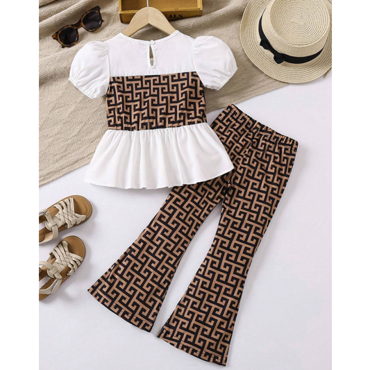 Baby Printed Puff Sleeve Top & Flare Pants
