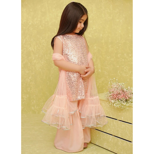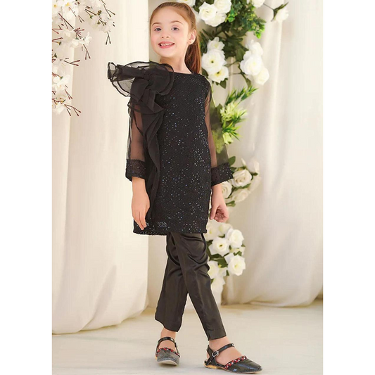 Baby Black Sequin Dress With Attached Frill Dupatta