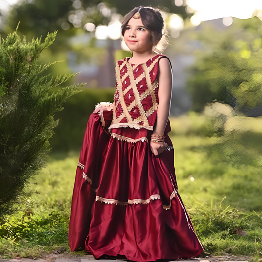 Baby Maroon Triangle Lehenga Choli