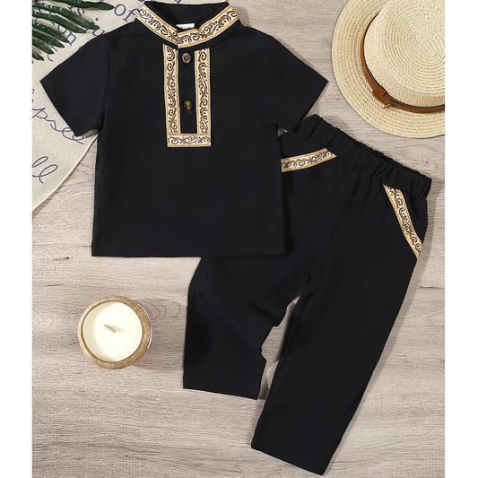 Baby Round Neck Flying Sleeves Top & Stripe Shorts