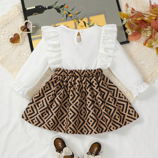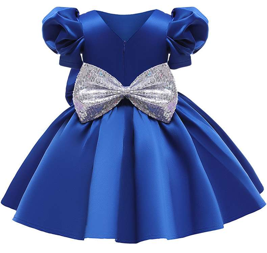 Baby Blue Puff Sleeves Frock With Yellow Bow