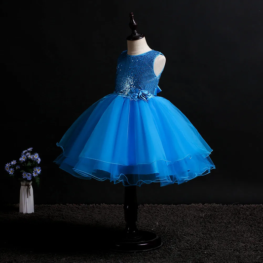 Baby Sky Blue Sequin Multi Layered Side Flower Frock